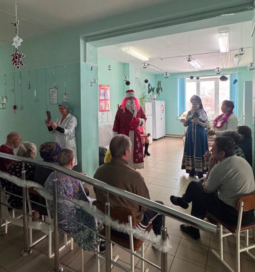 🎼 Для пациентов собственными силами был организован праздничный концерт и поздравления от Деда Мороза и Снегурочки.