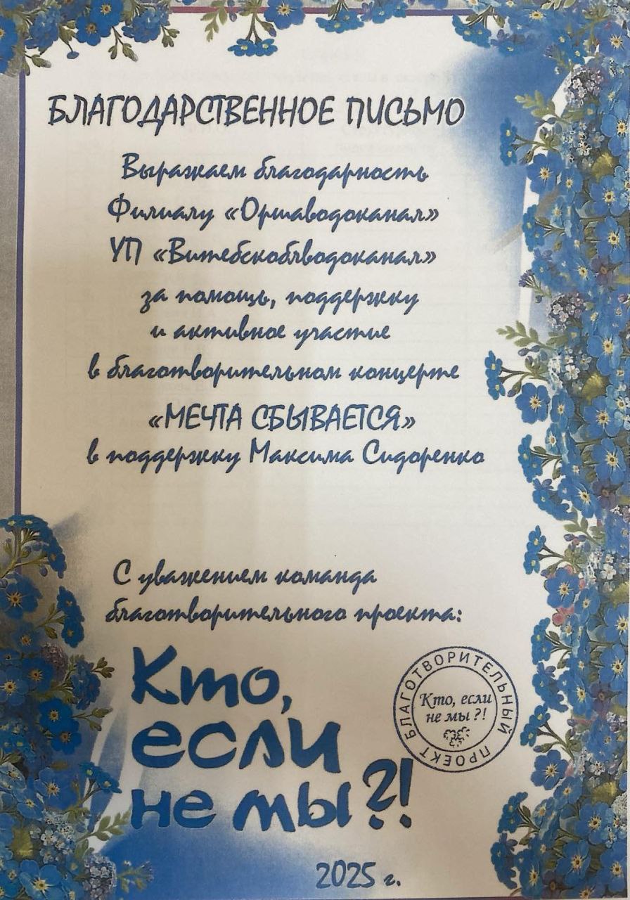 🌈 Работники Филиала «Оршаводоканал» 💦УП «Витебскоблводоканал» приняли участие в благотворительном проекте «Кто, если не мы?!», который был организован в поддержку Максима Сидоренко.