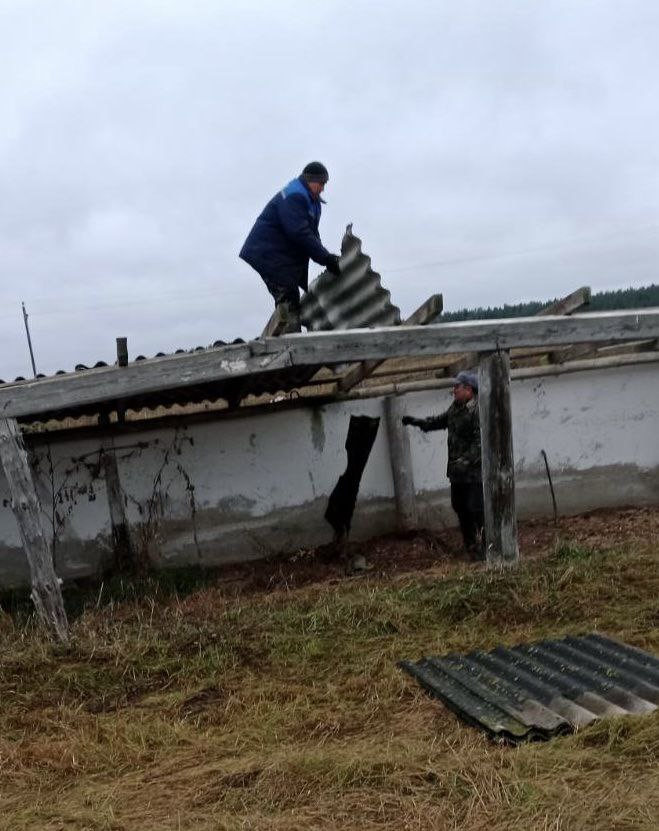 — снятию шифера с крыши фермы в аг.Райцы Толочинского района.