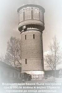 Водонапорная башня располагалась на улице Кирова. Объем бака был равен 360 м3, высота башни 19,5 м.