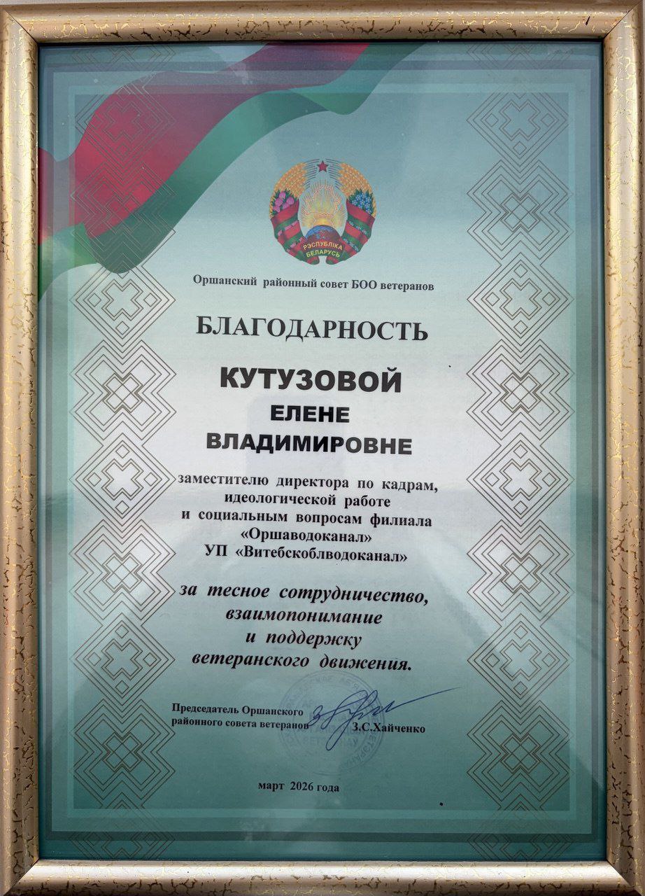 💐 На конференции заместителю директора по кадрам, идеологической работе и социальным вопросам 💦 Филиала «Оршаводоканал» УП «Витебскоблводоканал» — Елене Кутузовой вручена Благодарность за тесное сотрудничество, взаимопонимание и поддержку ветеранского движения👏👏👏